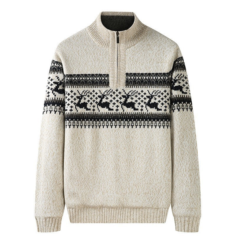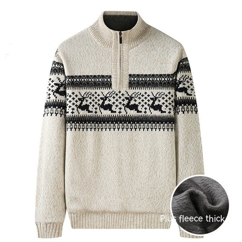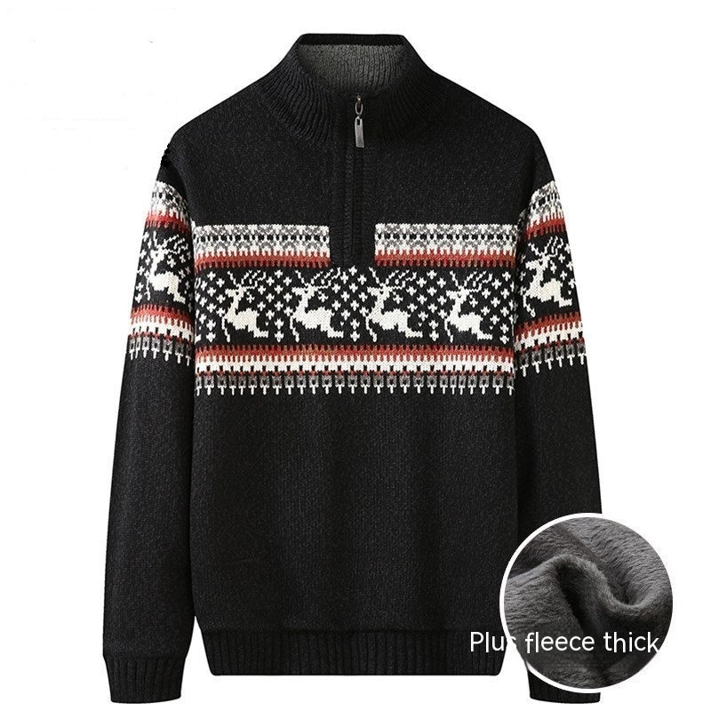 Thickening Fleece-lined Half-high Collar Knitted Sweater